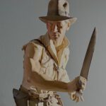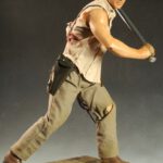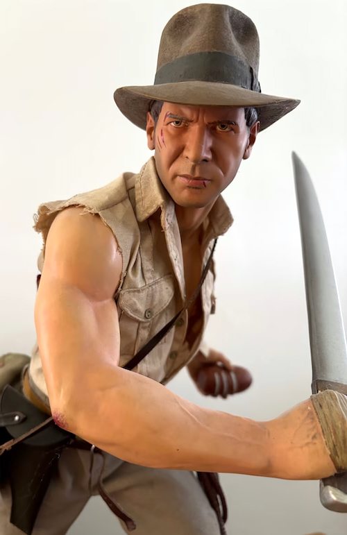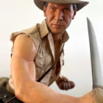 Mit einer spürbaren Dynamik wirkt die Figur von der ersten Betrachtung keinesfalls langweilig oder starr. Inmitten eines komplexen Bewegungsablaufes sehen wir ihn mit blutverschmierten Hemd und einer großen Machete. Es ist gen Ende des Films, als er Mola Ram ans Leder will und grad aus dem Temple entflohen ist und die Sankara Steine in der Tasche auf dem Rücken bei sich trägt. Ein ikonischer Moment, der hier eine tolle Abbildung widerfährt. Hochwertiges Resin, passende und überzeugend ausgestaltete Textilkleidung und eine professionelle Handbemalung – das sind im Grunde die Zutaten hier.