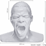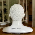 Die genaue Material-Zusammensetzung des Kopfes kann ich nicht beschreiben, Angaben hierzu fehlen. Fest steht, dass dieses Stück Deko handgemacht ist und circa 1,9 kg auf die Waage bringt. Die Verarbeitung wirkt gut. Auch die Seidenmatt weiße Bemalung wirkt professionell, aufgebracht und nahezu frei von Bläschen. Es entsteht eine angenehm weiche, softe Reflektion der Lichtquellen aus der direkten Umgebung.