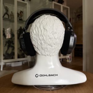 Der Abstand zwischen den Ohren beträgt dabei circa 16cm. Natürlich liegt es auch an den verwendeten Kopfhörern, doch mehr als 16cm sollte es bei meinen Modellen nicht sein, da ansonsten eine erhöhte Belastung des Bügelsbeziehungsweise der Aufhängung damit einhergeht.