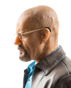 In der überaus erfolgreichen und dazumal als mutig und innovativ gefeierte US-amerikanische TV-Serie „Breaking Bad“ waren es neben einem zwielichtigen Anwalt vor allem Erfüllungsgehilfe Jesse, der eher wortkarge Ex-Con und Killer Mike (Ehrmantraut) und eben Chemie-Lehrer mit Alter-Ego Heisenberg, Walter White, welche die Story nach vorne trieben. Zweien von Ihnen gönnte das Supacraft Studio jeweils eine Resin-Figur im 1:4-Format. Eine davon ist diese hier, es handelt sich um die Hauptfigur Walter White. Gewissermaßen eine Art Transformers-Figur, denn mit wenigen Handgriffen kann man die Brille gegen eine Sonnenbrille tauschen und der Statue einen Hut aufsetzen – viola: Heisenberg steht nun vor uns.